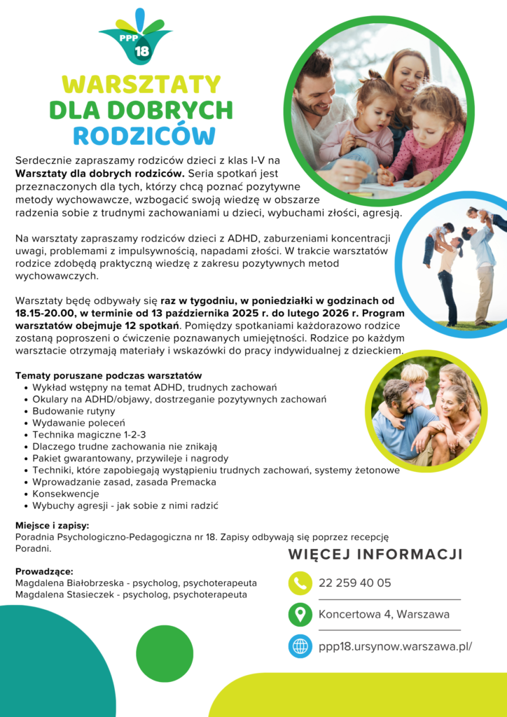 Rodzice Oferta zajęć postdiagnostycznych w roku szkolnym 2025/2026: Trwają zapisy: Konsultacje dla rodziców z zakresu SI – więcej informacji wkrótce Koniec rekrutacji: